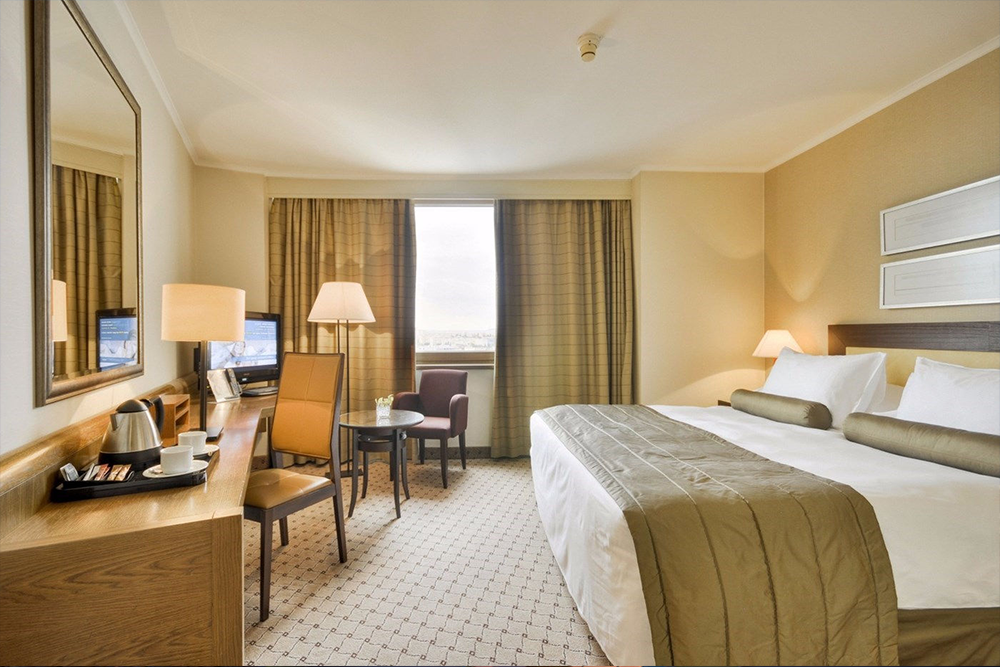 Beautifully decorated in soft, natural tones, our 23m² Deluxe City View Queens are designed for unrivalled relaxation. Furnished with state-of-the-art Corinthia Dream Beds, Deluxe City View Queens give way to a sweeping vista of this historic city with its beautiful skyline and world-renowned architecture. Every room comes complete with all the luxuries you'd expect from such a fine hotel. These include LCD HD TVs with 75-plus local and international channels, a choice of 40 films and interactive wake-up call function, Wi-Fi and premium tea and coffee-making facilities. Interconnecting rooms are available on request. Other facilities available include: Non-smoking rooms, reduced mobility facilities, complimentary Wi-Fi throughout the hotel, executive lounge with coffee, tea and other refreshments, concierge services, 24-hr Room service, 24-hr Housekeeping, day Spa located on the top floor, swimming pool on 26th floor with amazing panoramic views, hotel transport service, secured garage with car wash, facilities for disabled guests, hairdressing salon, beauty parlour, gift shops, laundry services, ATM machine, free use of Press reader App – over 200 newspappers and magazines on your mobile.
